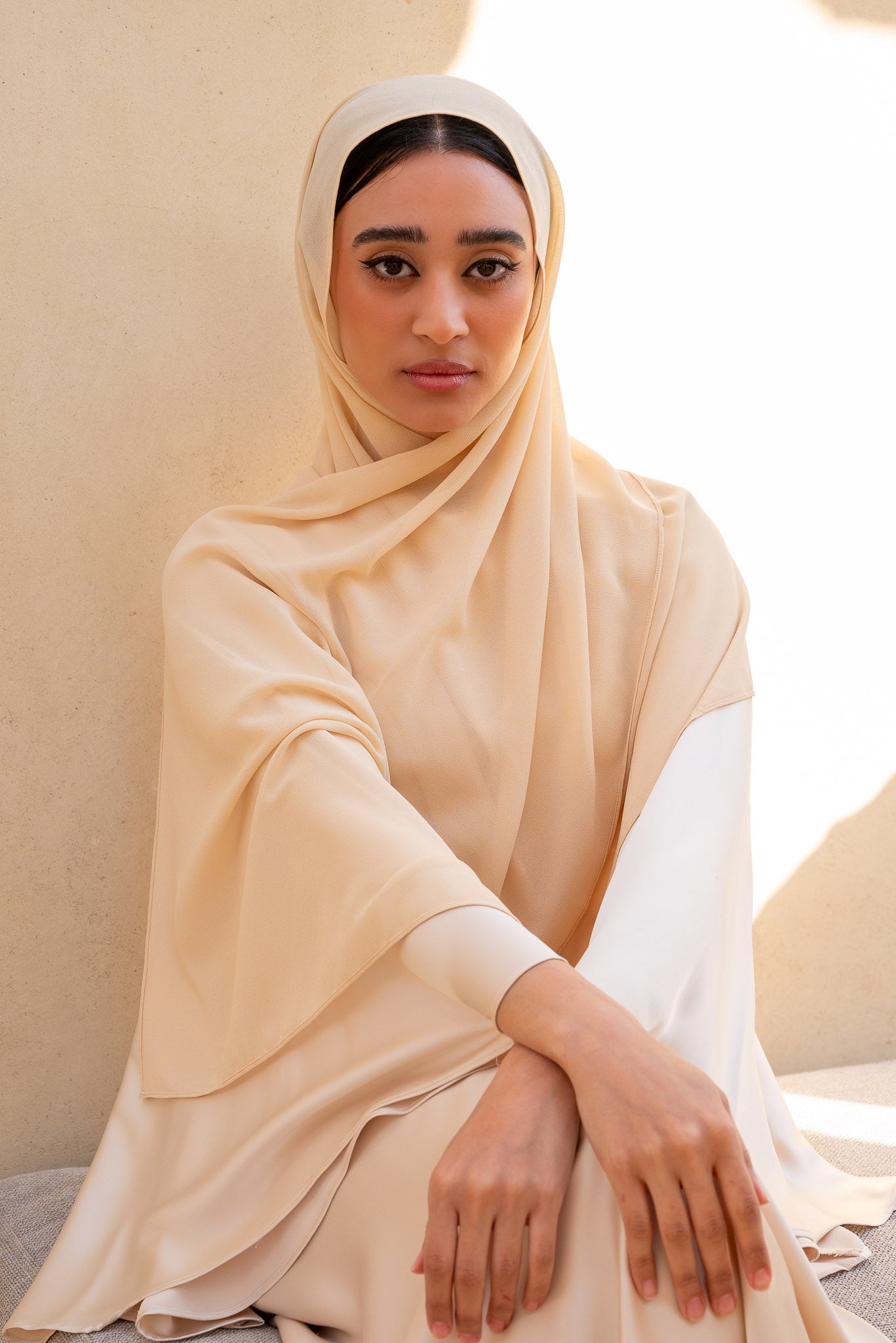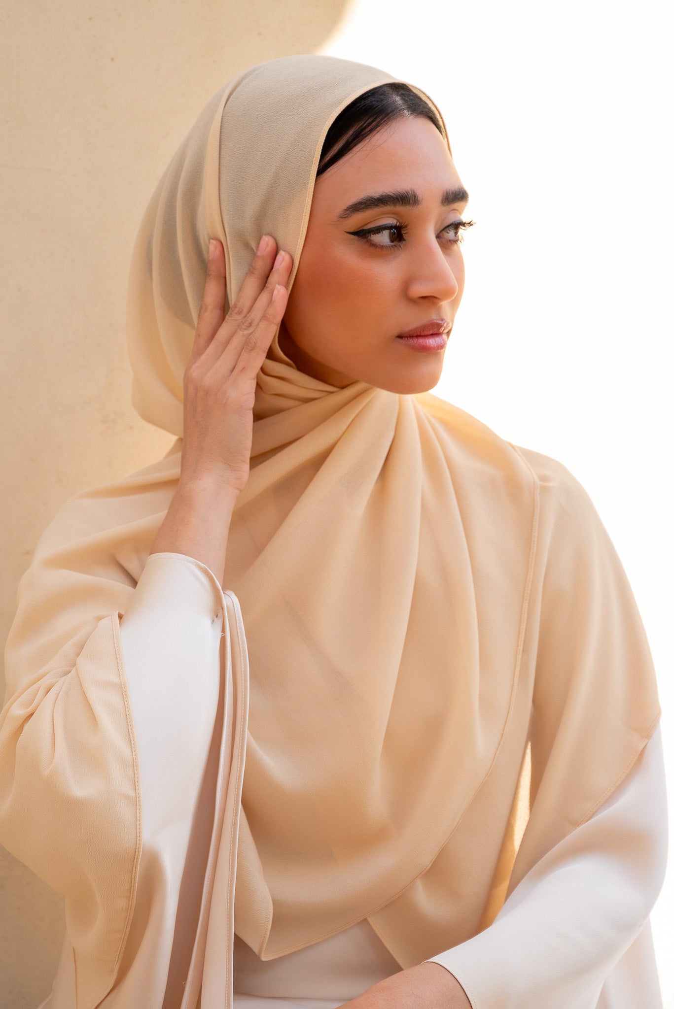 Cream Beige Chiffon Hijab 50