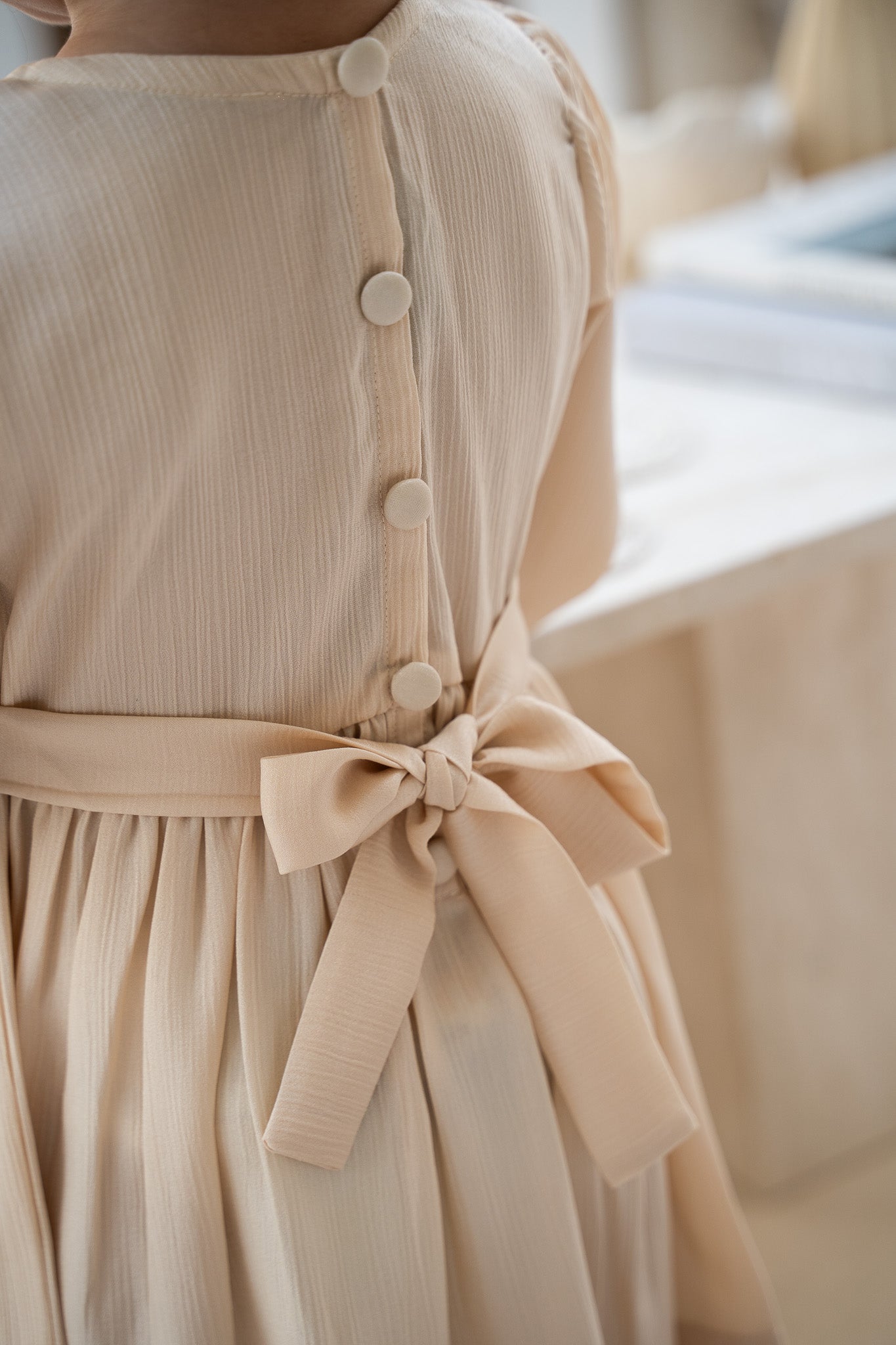 Elegantly designed for playful comfort, the Cream/ivory Belted Embellished Chiffon Baby Dress is a timeless piece for your little one’s special moments. Crafted from airy chiffon with a soft satin lining, this dress offers a graceful flow while ensuring all-day comfort. The delicate embellishments on the neckline add a touch of sparkle, while the matching belt cinches the waist for a refined silhouette.