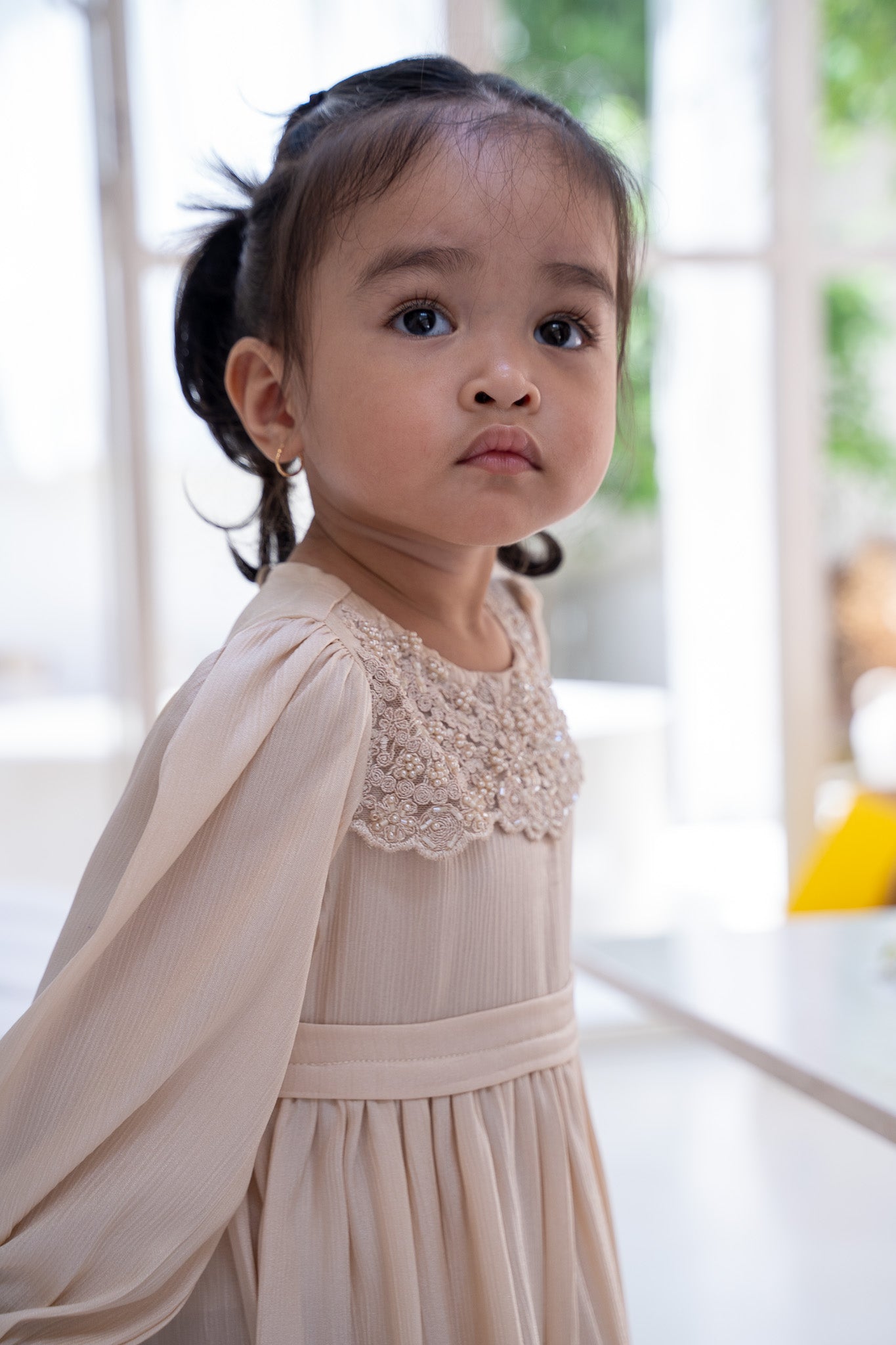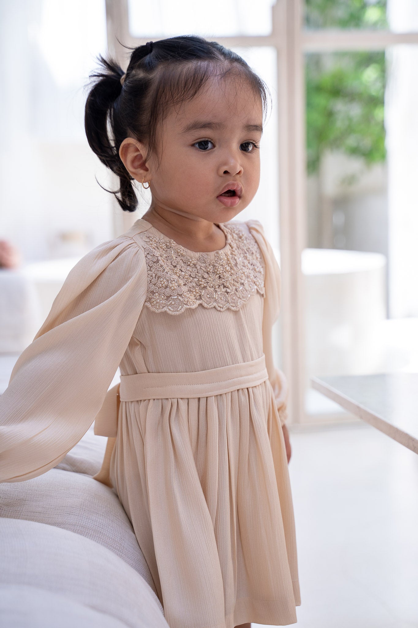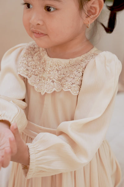 With its long sleeves and full-length design, this dress is perfect for weddings, Eid celebrations, and formal gatherings. The soft cream hue enhances its classic charm, making it a versatile and elegant choice for any occasion.