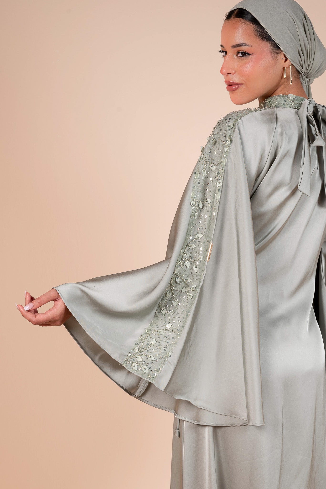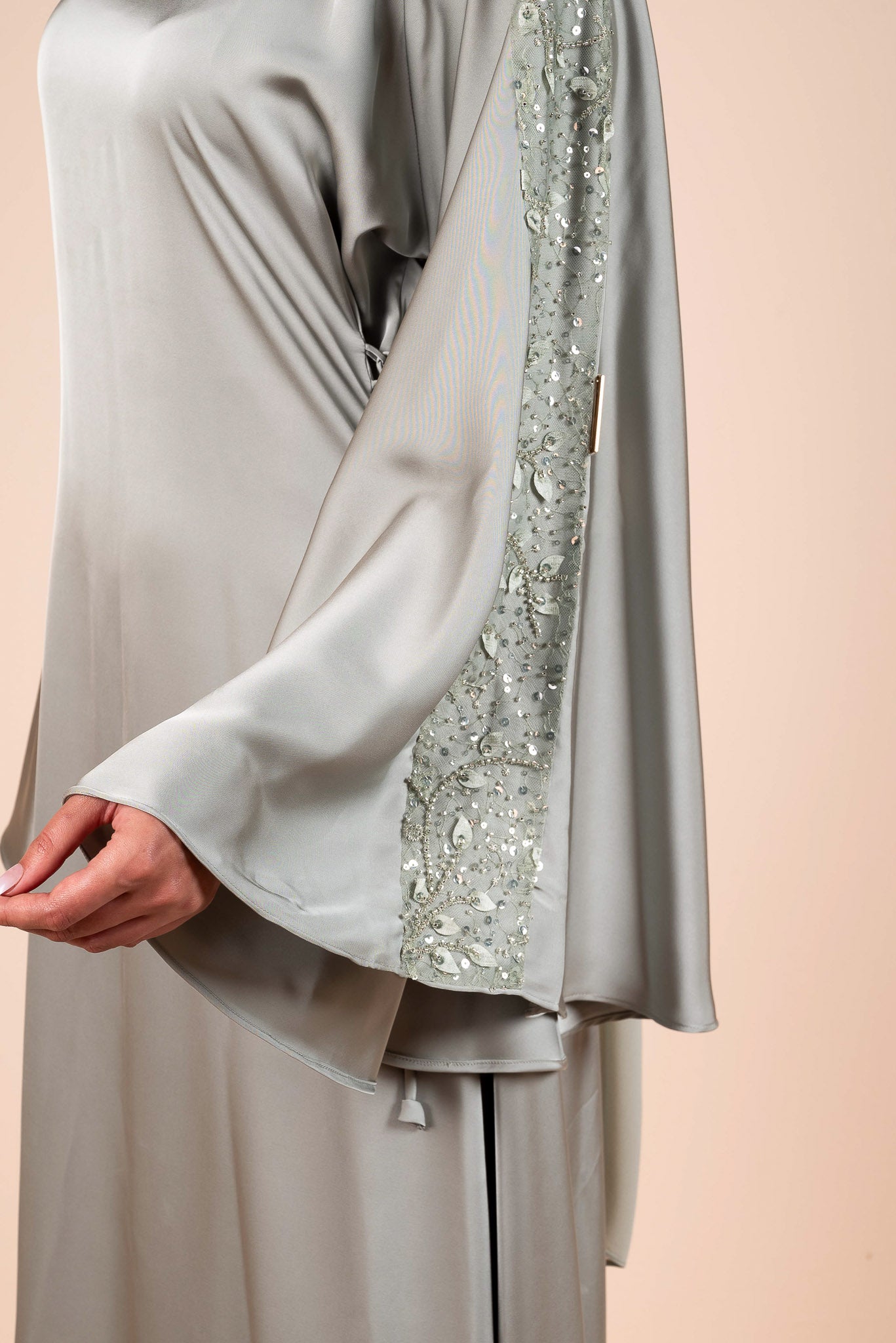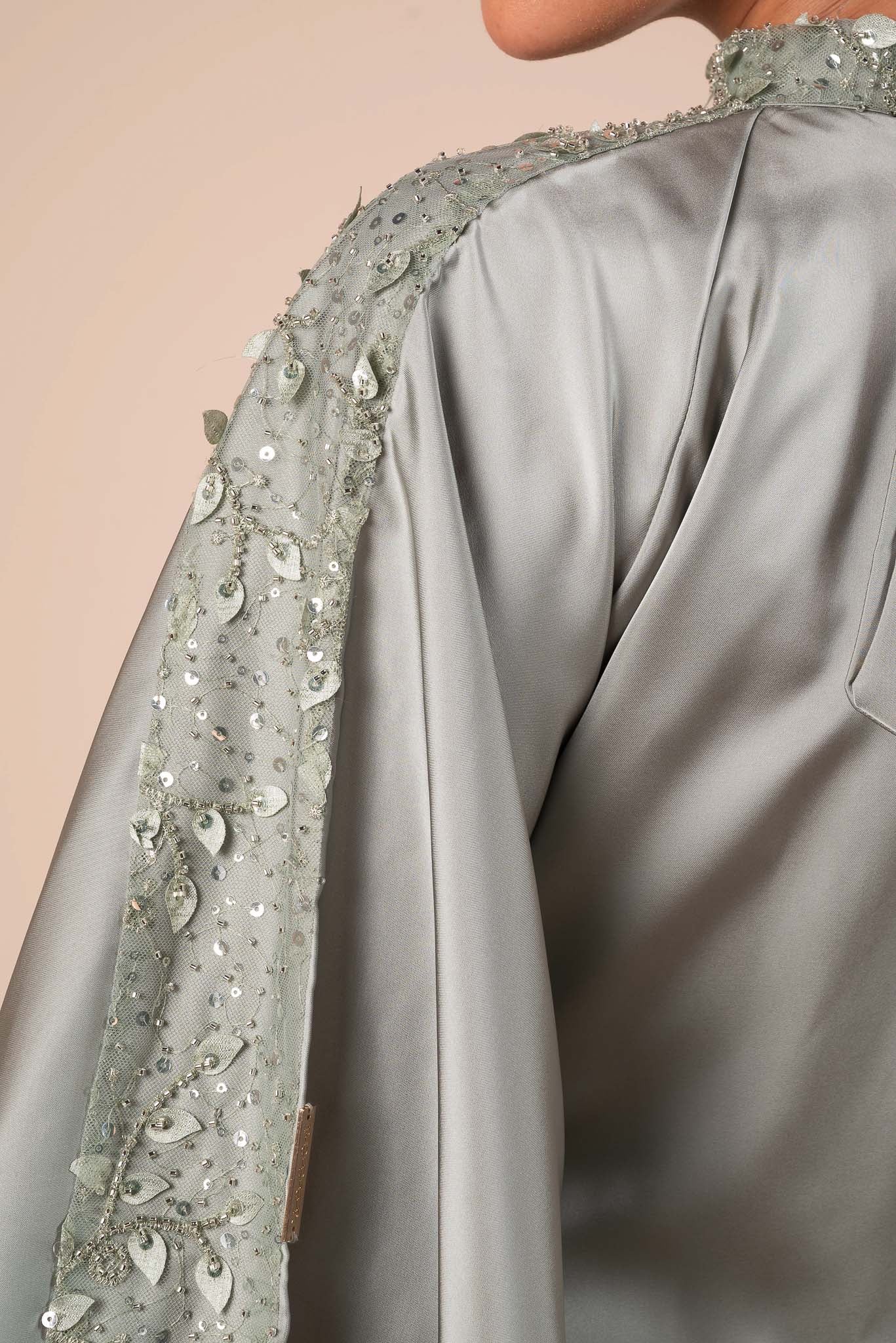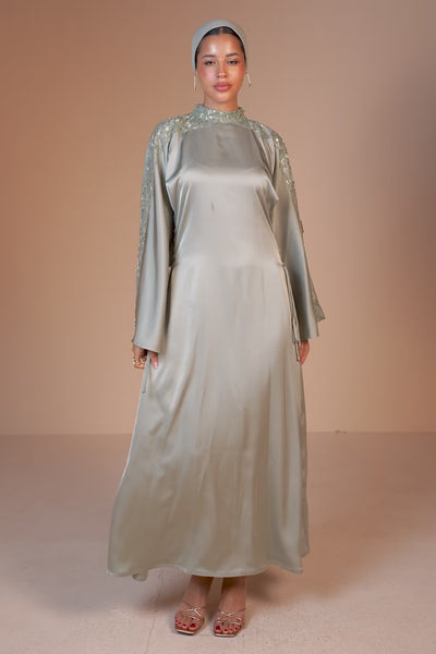 Embellished Sage Green Flow Sleeves Abaya