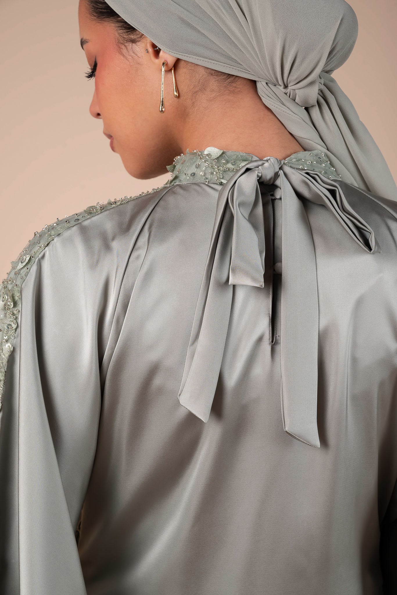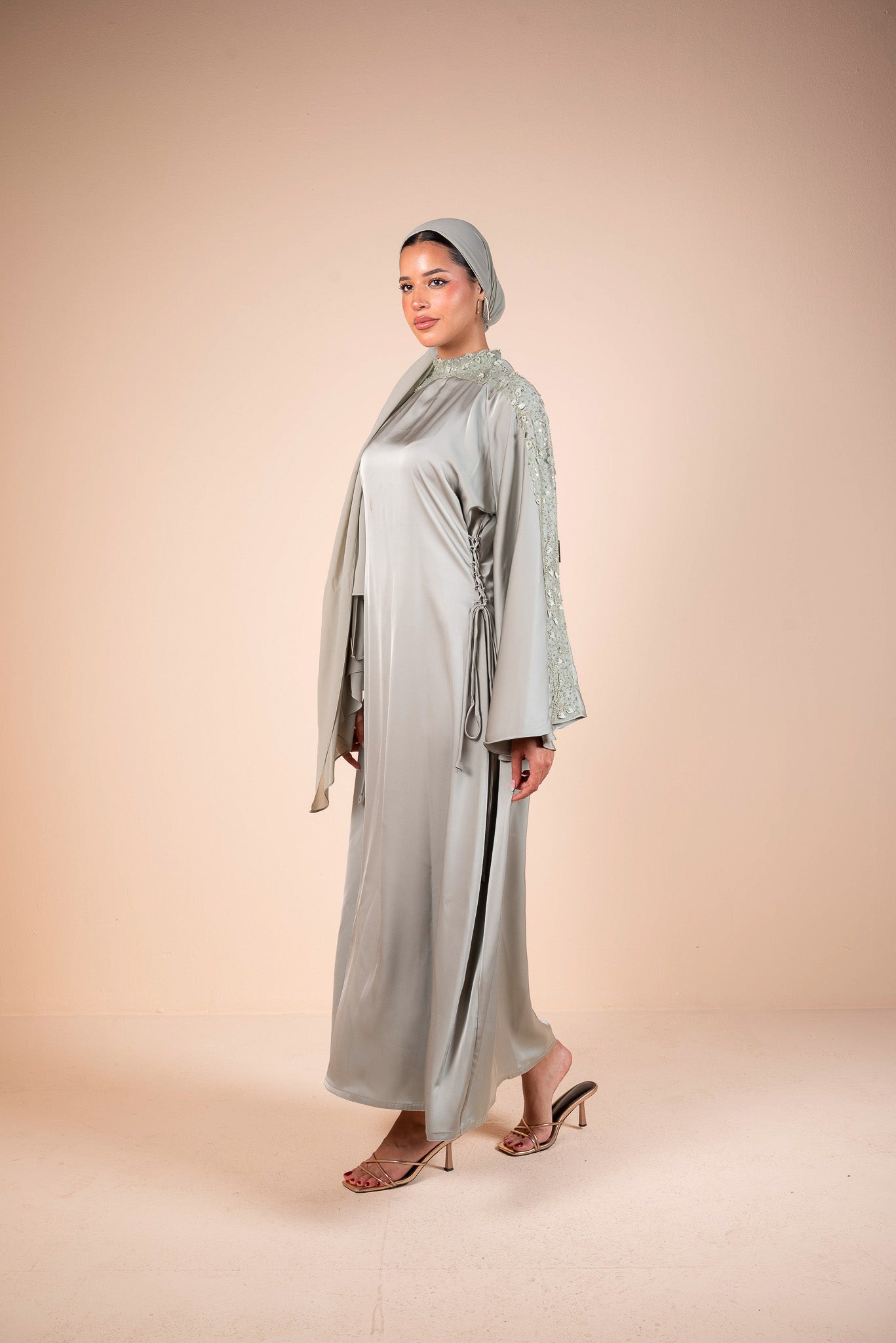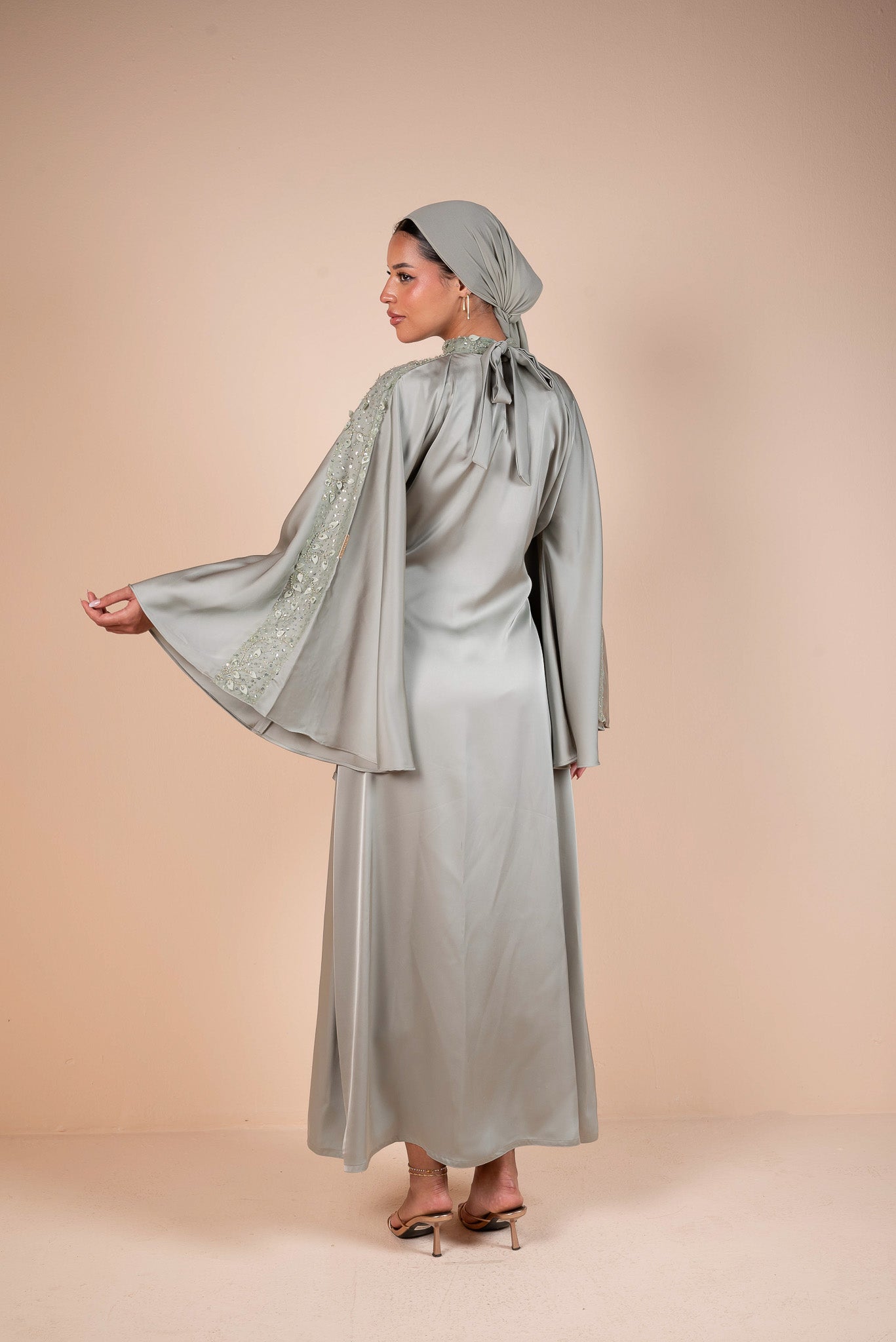 Embellished Sage Green Flow Sleeves Abaya