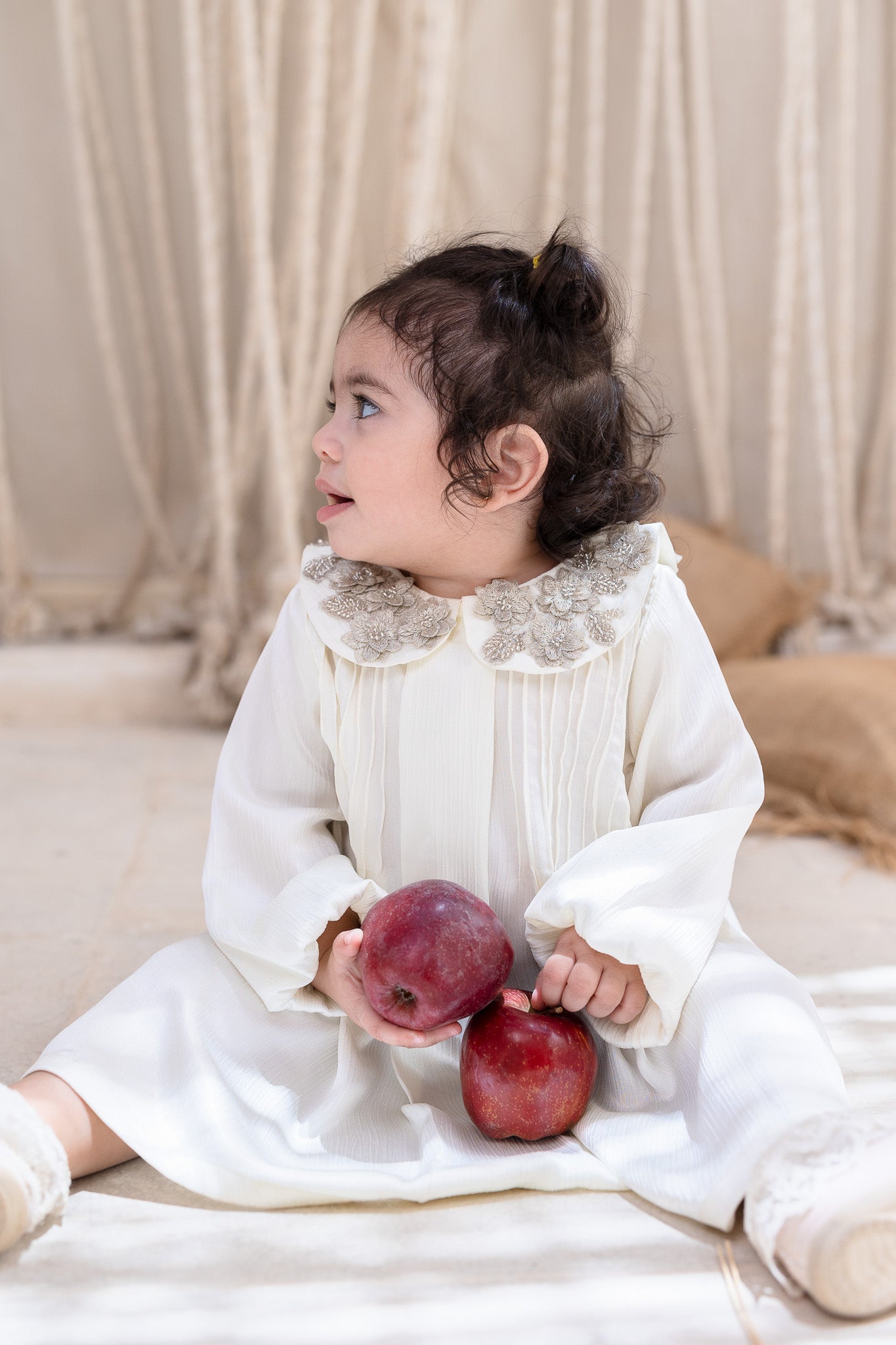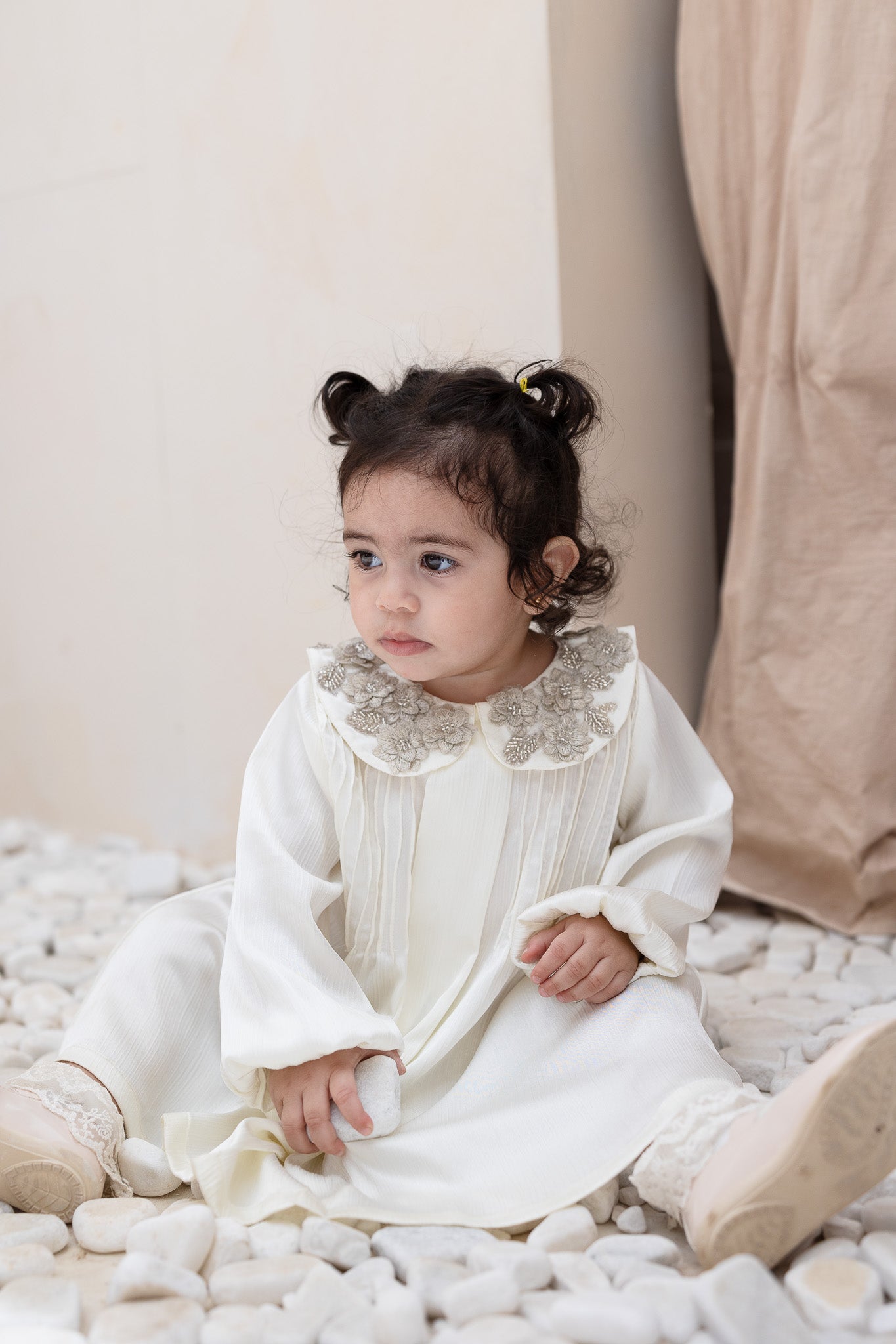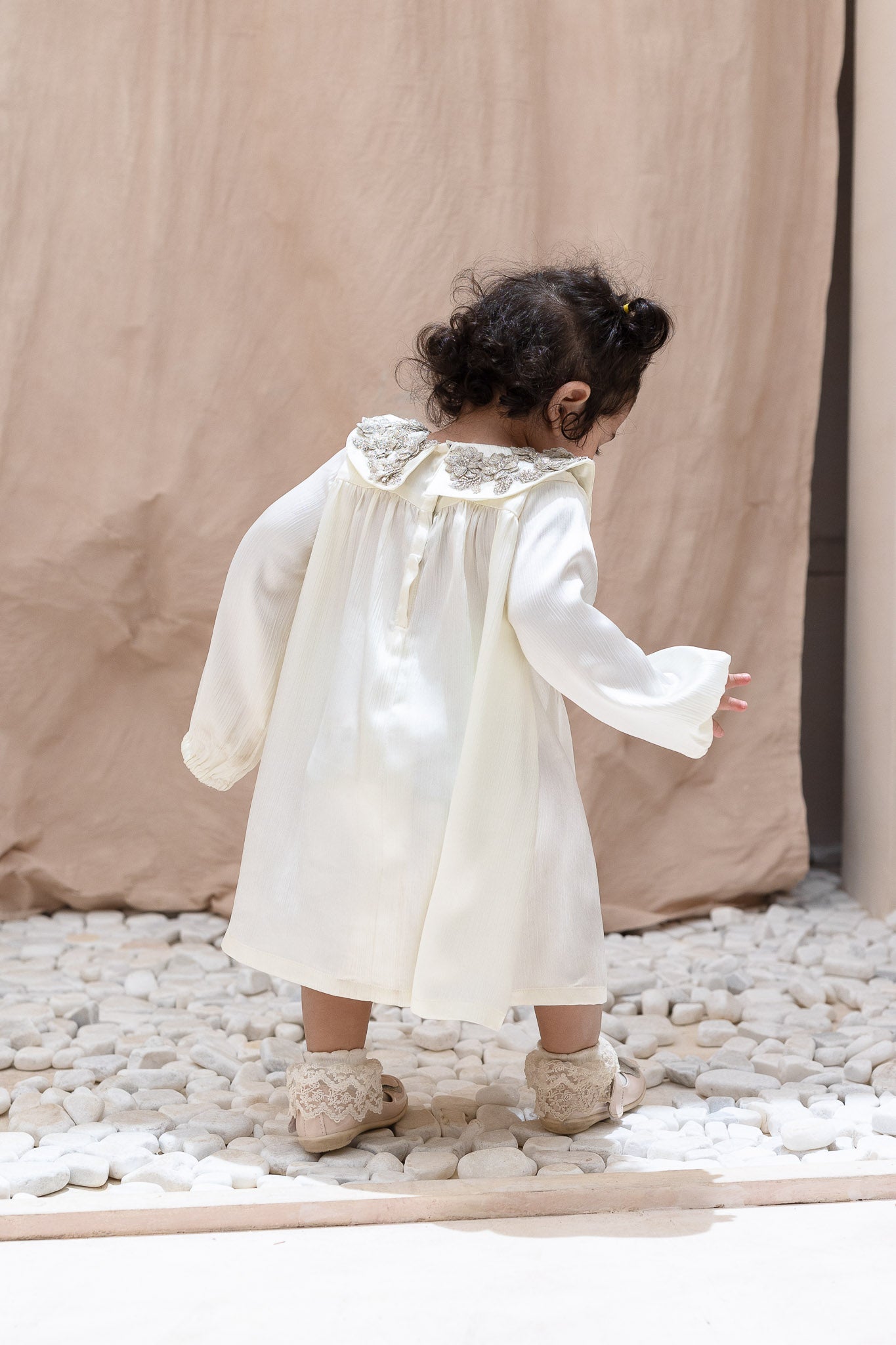 Ivory Embellished Collar Pleats Baby Dress