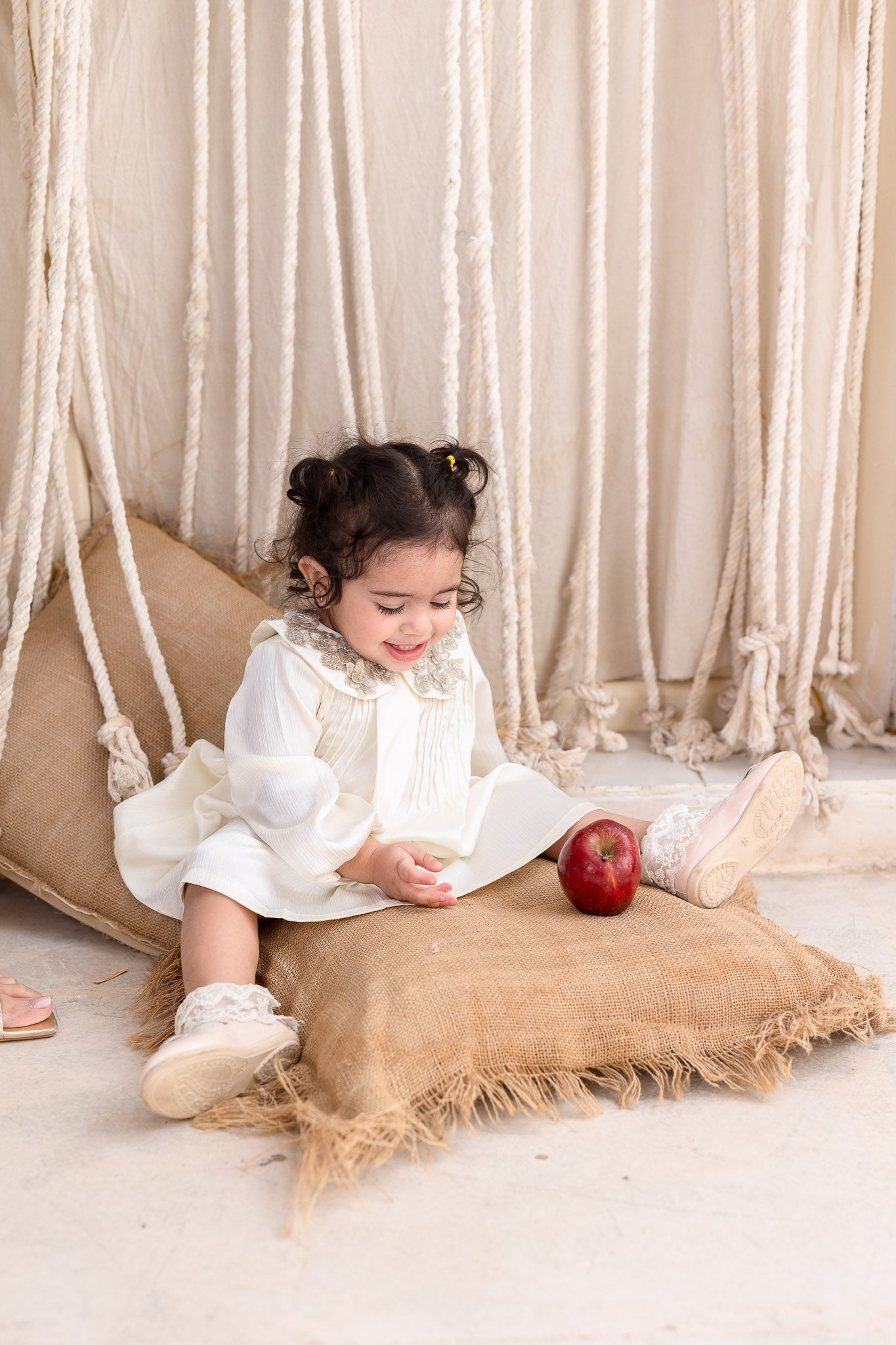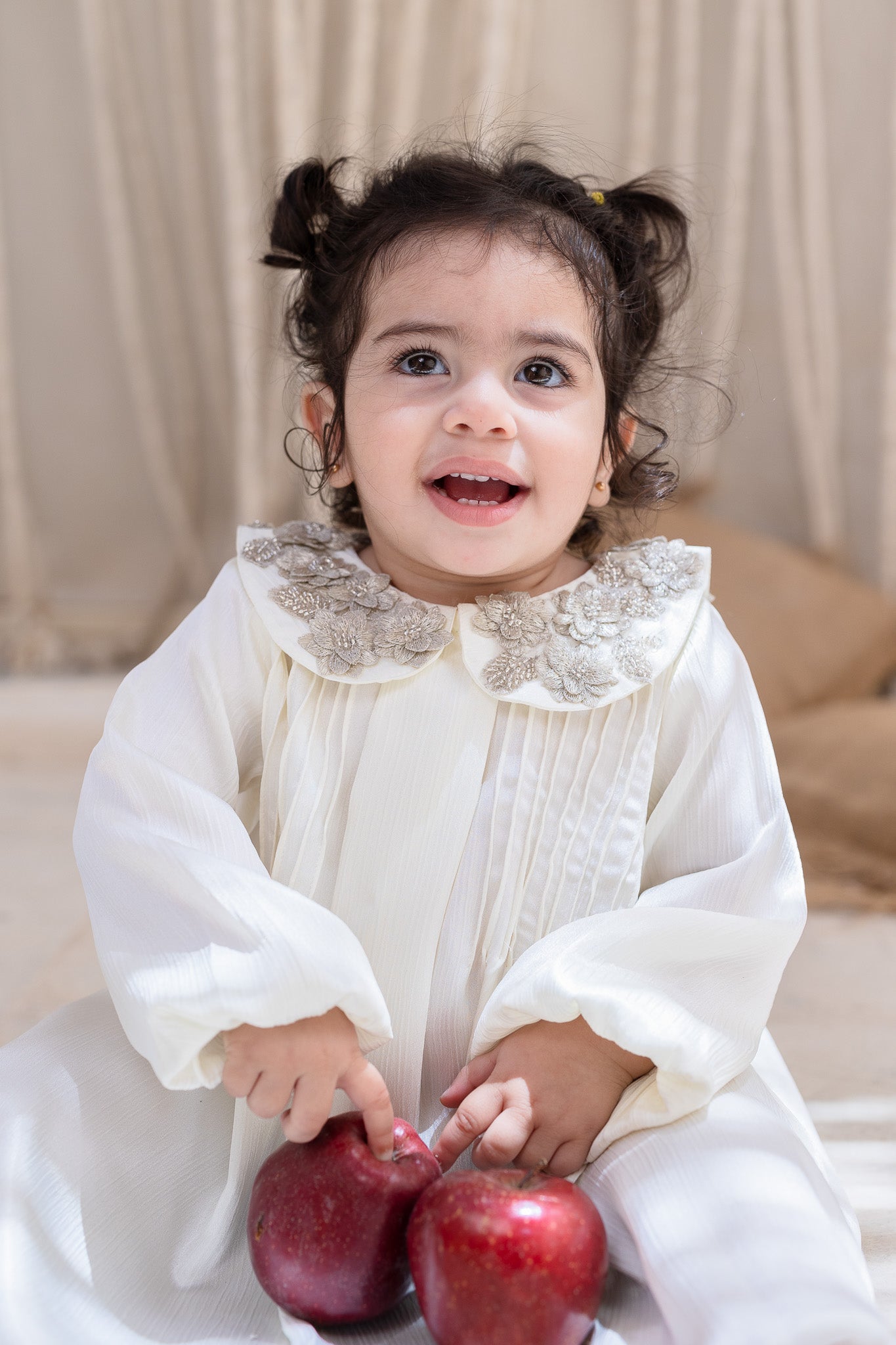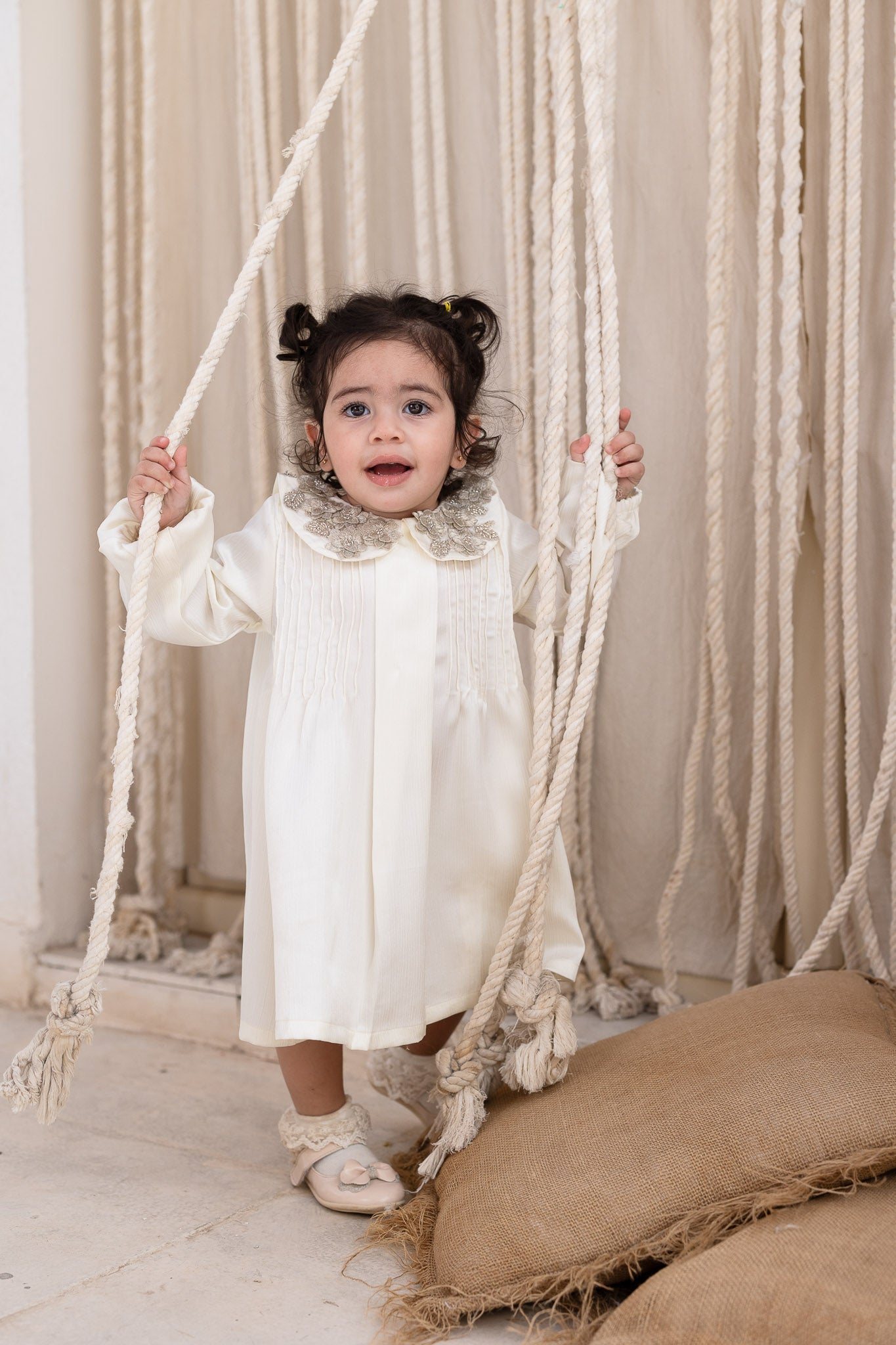 Ivory Embellished Collar Pleats Baby Dress