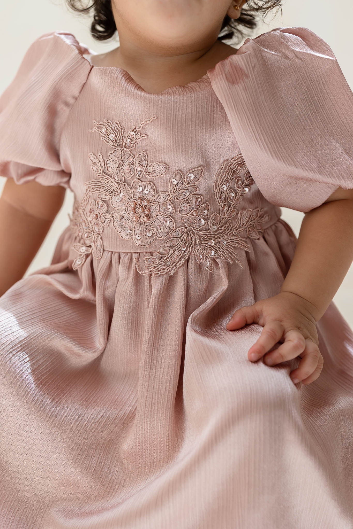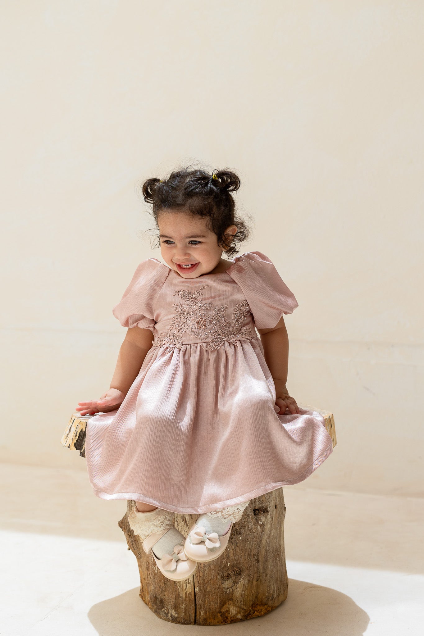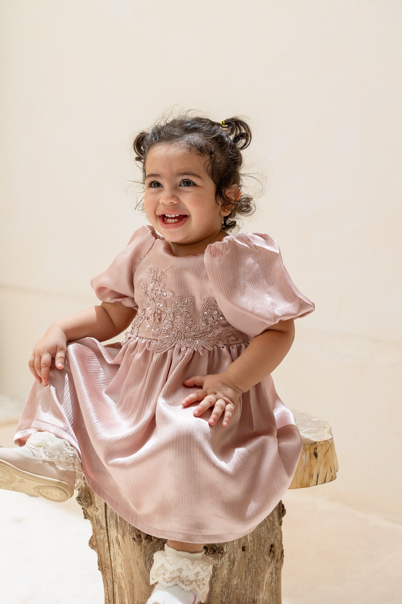 Delicate, dreamy, and made for special moments, the Light Pink Embellished Puff Sleeve Baby Dress is a miniature showstopper. Crafted from soft satin with a gentle sheen, this dress features elegant embellishments across the bodice and dainty puff sleeves that add a touch of whimsy. The light pink tone gives it a soft, graceful feel, perfect for celebrations, family occasions, or matching with older siblings or mum.