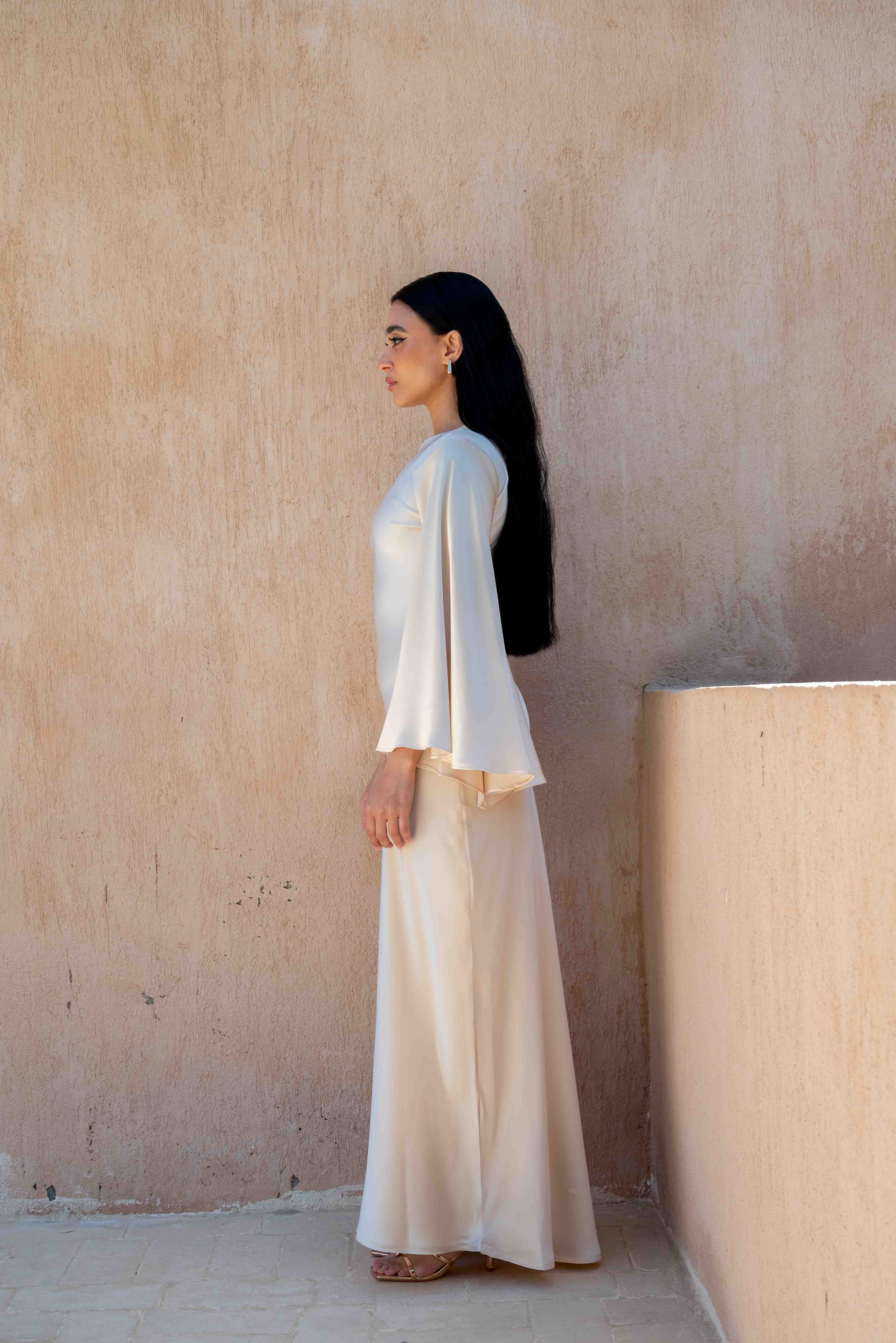 Meet the big sister to our beloved Lilly Dress—the Liliana Dress. Designed to elevate your wardrobe, this elegant ivory-cream modest dress brings a blend of timeless sophistication and modern style. The flowing bell sleeves and relaxed A-line silhouette offer a flattering, comfortable fit, perfect for any special occasion. Responding to customer demand, the Liliana Dress features a narrower neckline and thicker fabric compared to our existing Lilly Dress, adding a touch more structure while maintaining its signature graceful flow.