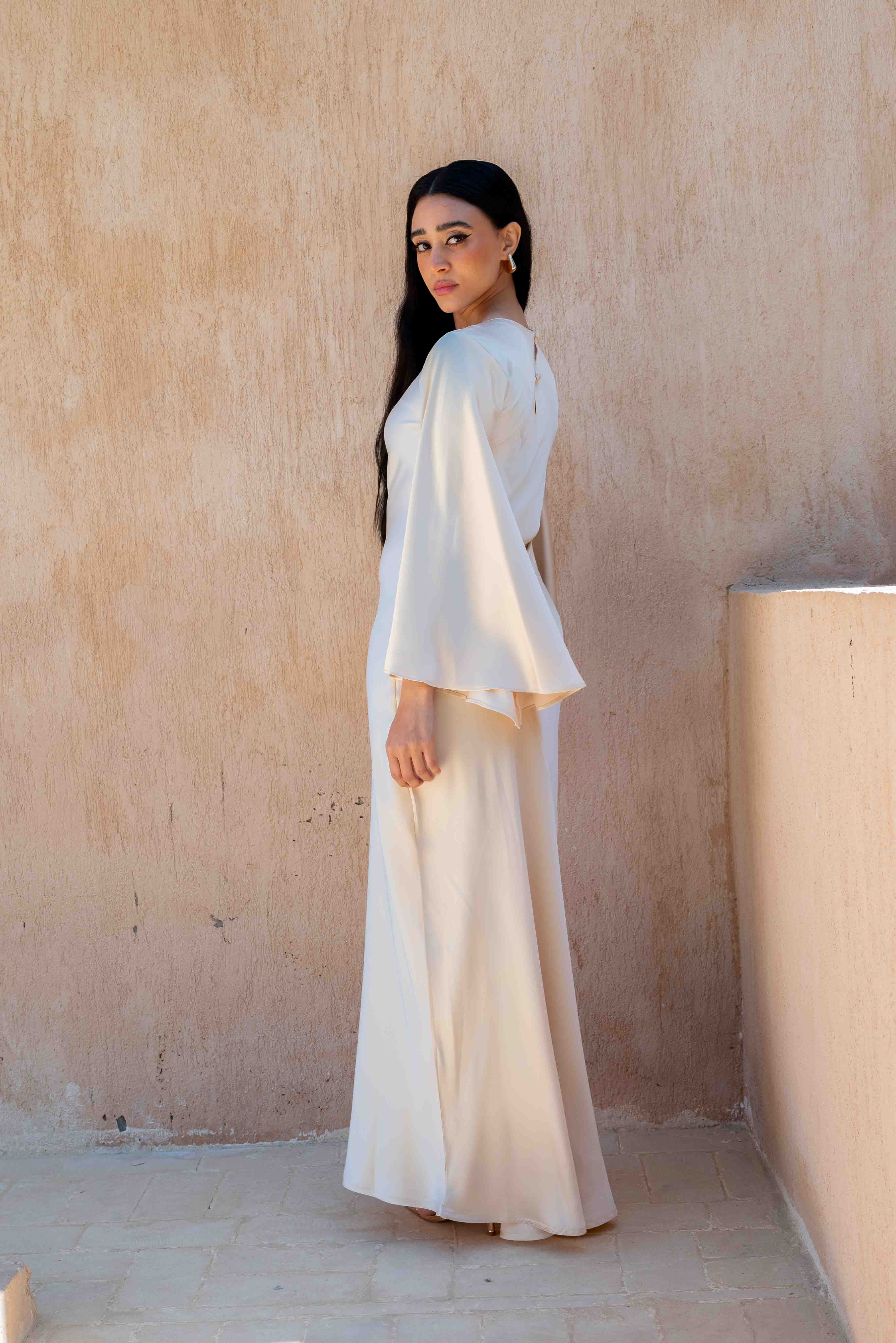Whether you're attending a wedding, formal gathering, or evening event, the Liliana Dress promises effortless elegance. Its neutral warm ivory-cream tone makes it incredibly versatile for accessorising, allowing you to easily dress it up or down depending on the occasion.