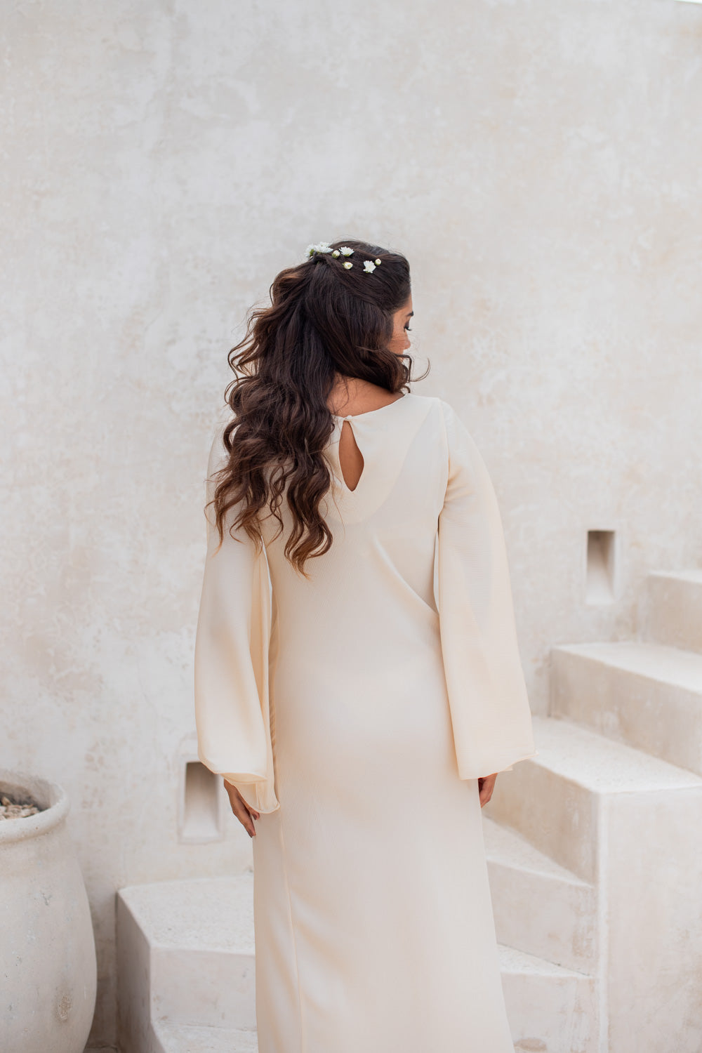 Elevate your wardrobe with this elegant beige modest dress, perfect for any special occasion. Designed with flowing bell sleeves and a relaxed A-line silhouette, this dress combines timeless sophistication with contemporary style. The lightweight, premium fabric offers comfort and a flattering fit, ideal for weddings, formal gatherings, or evening events. Its neutral ivory beige tone makes it versatile for accessorizing, allowing you to dress it up or down with ease. Whether you’re looking for chic evening wear or a refined daytime outfit, this dress ensures effortless elegance. Shop now and add a touch of grace to your collection!
