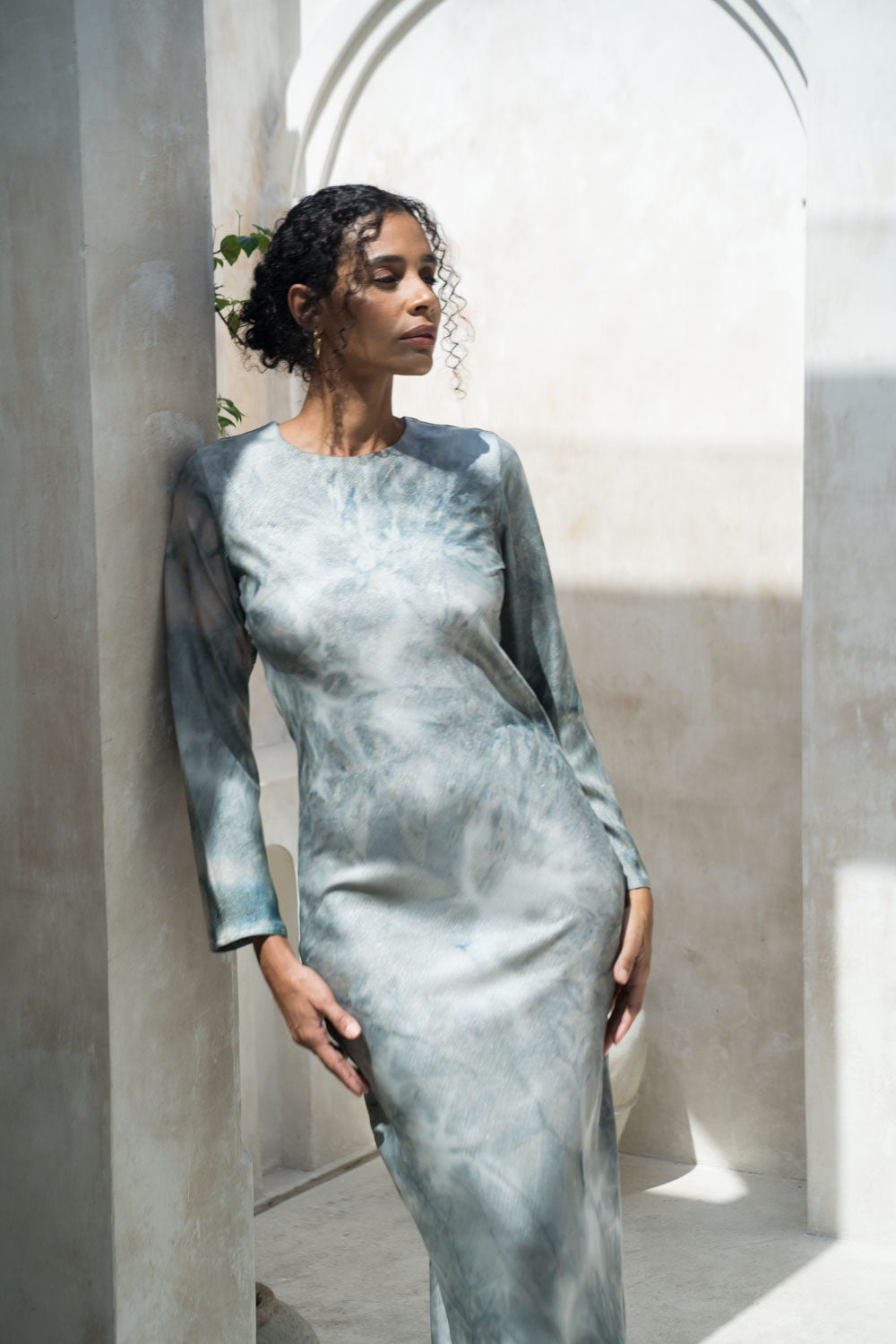 Introducing our stunning Mystic Cloud Dress that exudes confidence, elegance, and femininity! This dress features beautiful bell sleeves that add a touch of playful sophistication to your evening attire. The fitted design creates a flattering hourglass shape, highlighting your natural beauty and enhancing your silhouette.
