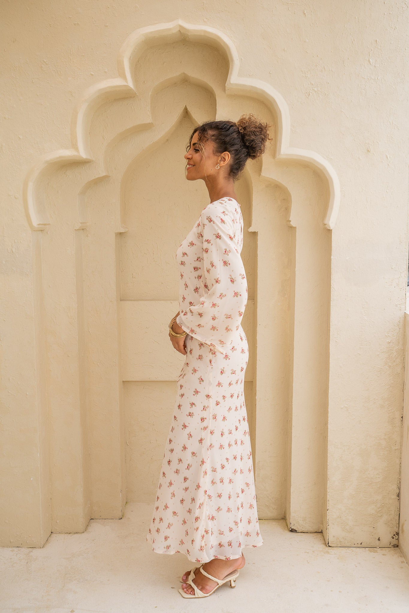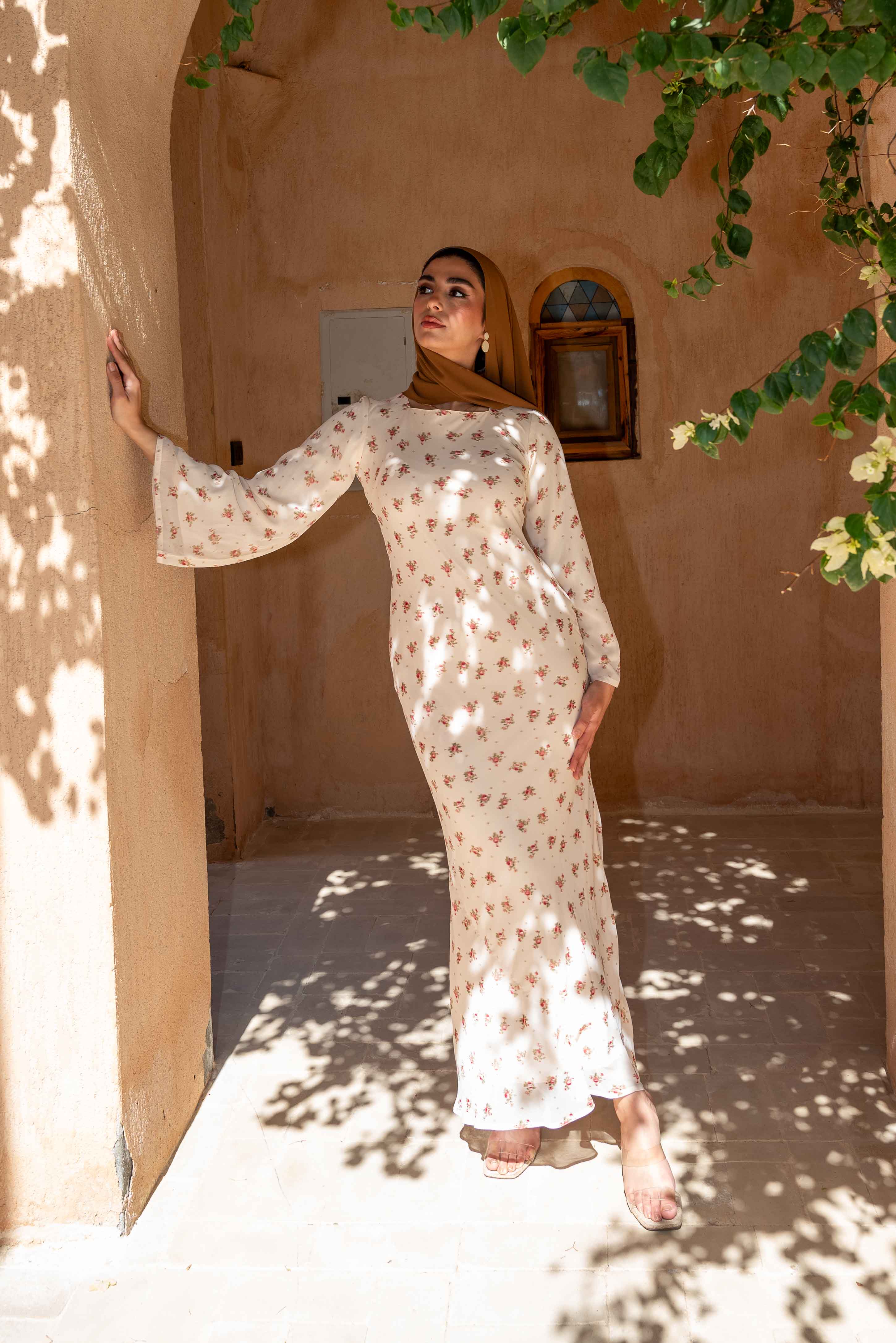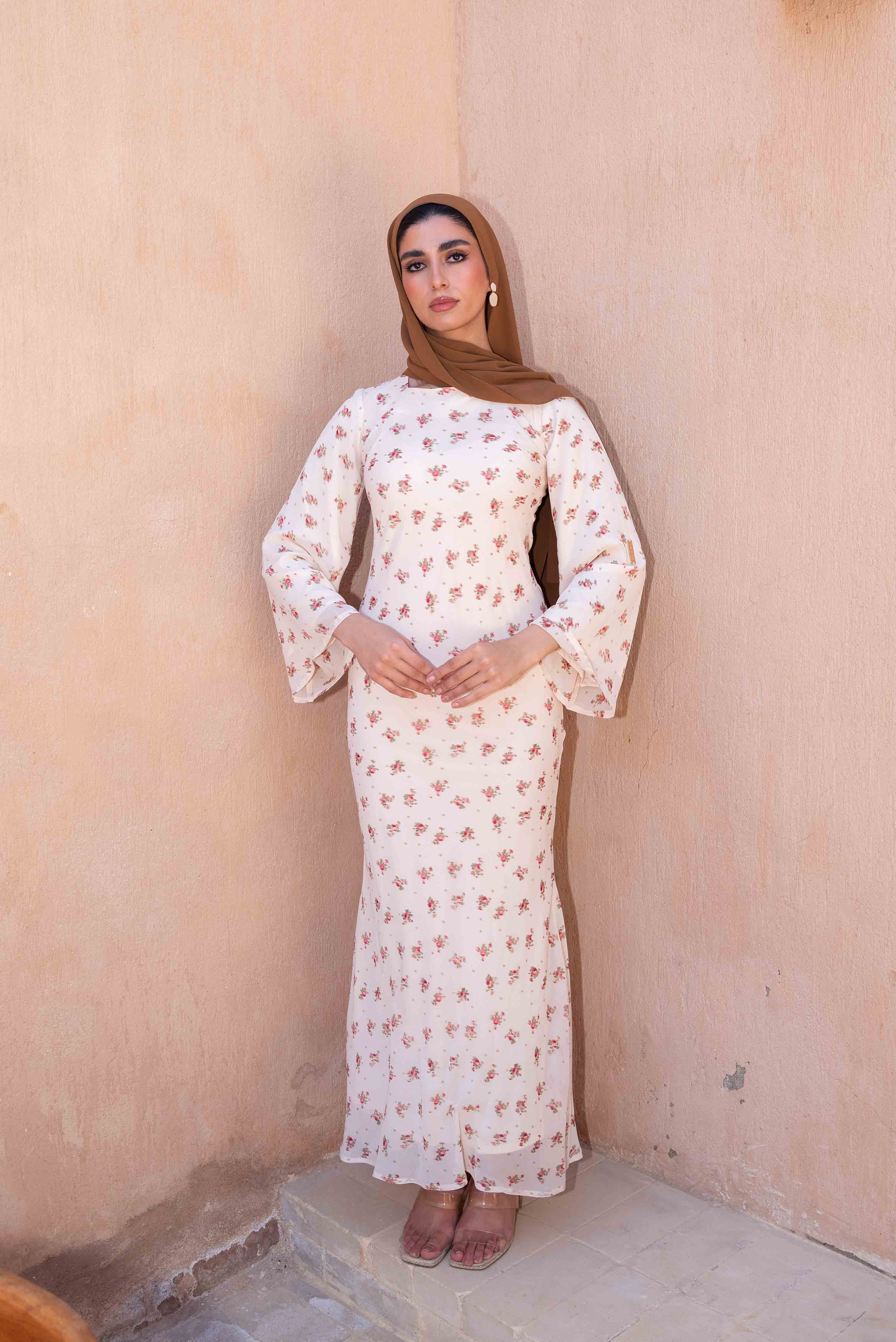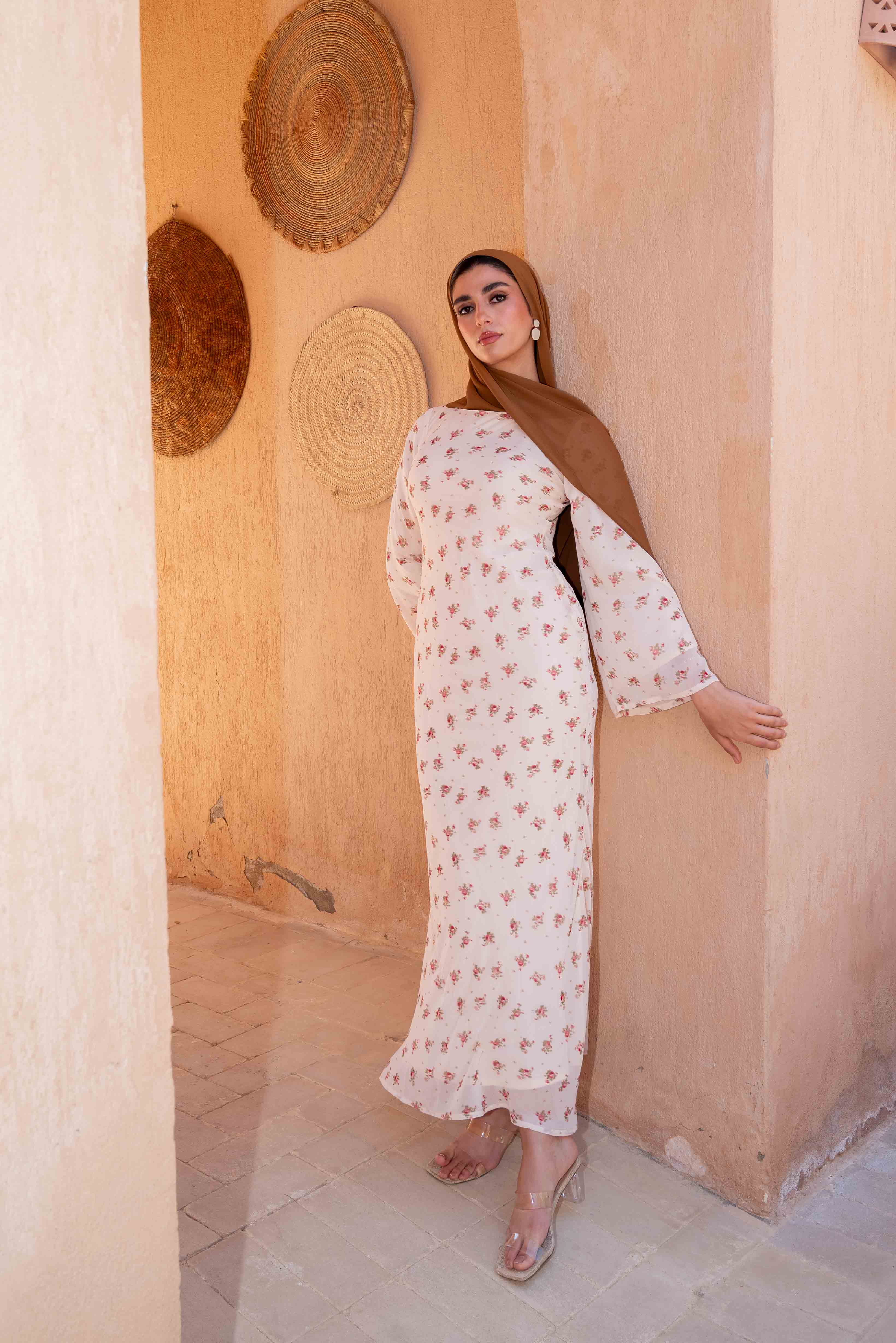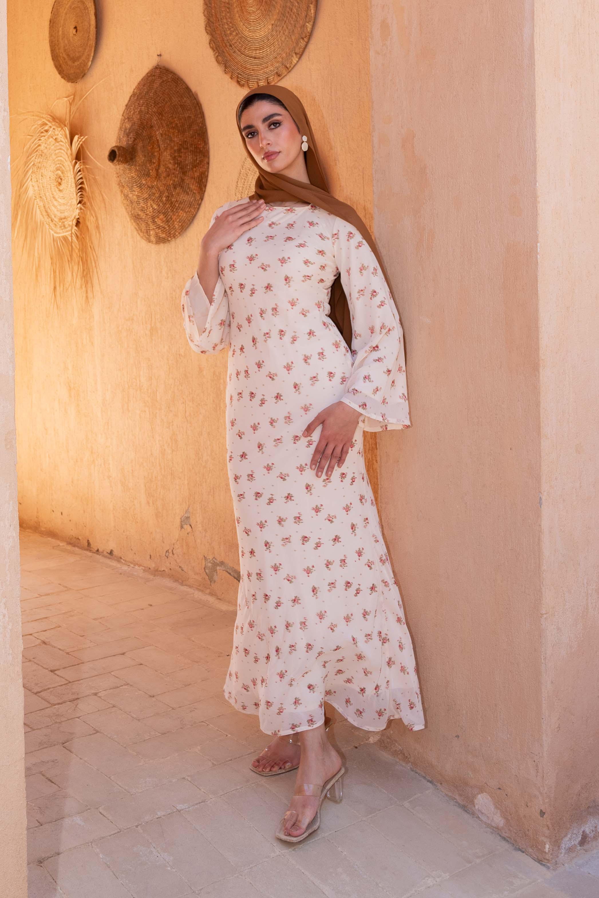 Soft, romantic, and effortlessly elegant, the Pink & Cream Ditsy Floral Maxi Dress is designed for those who love a delicate, feminine touch. The smooth satin lining ensures both comfort and modest coverage, while the full-length light chiffon overlay adorned with a ditsy floral pattern offers an airy, ethereal feel. The flowy silhouette creates graceful movement with every step. The soft pink and cream hues add a touch of vintage charm, making it perfect for Eid celebrations, garden parties, and elegant gatherings.