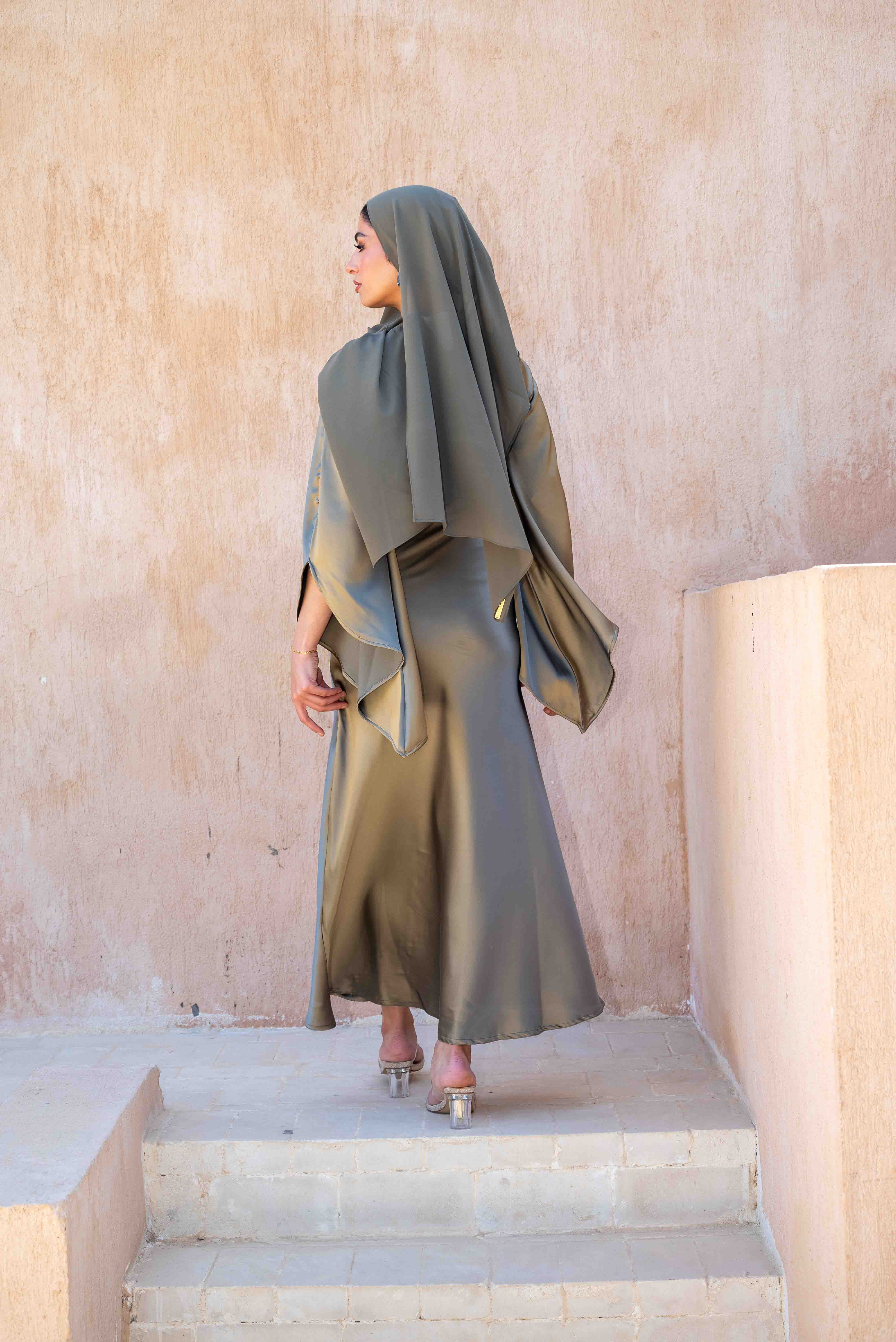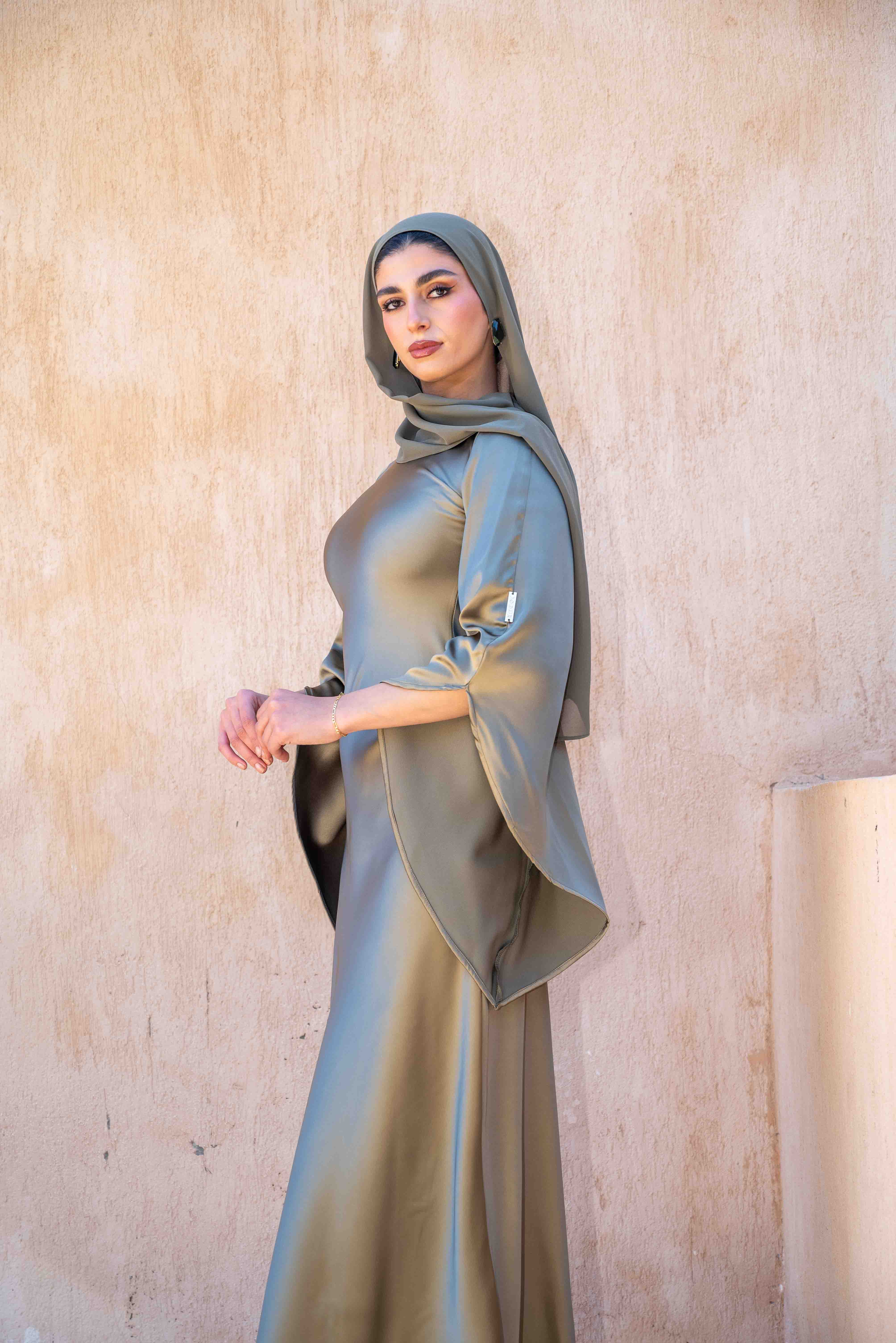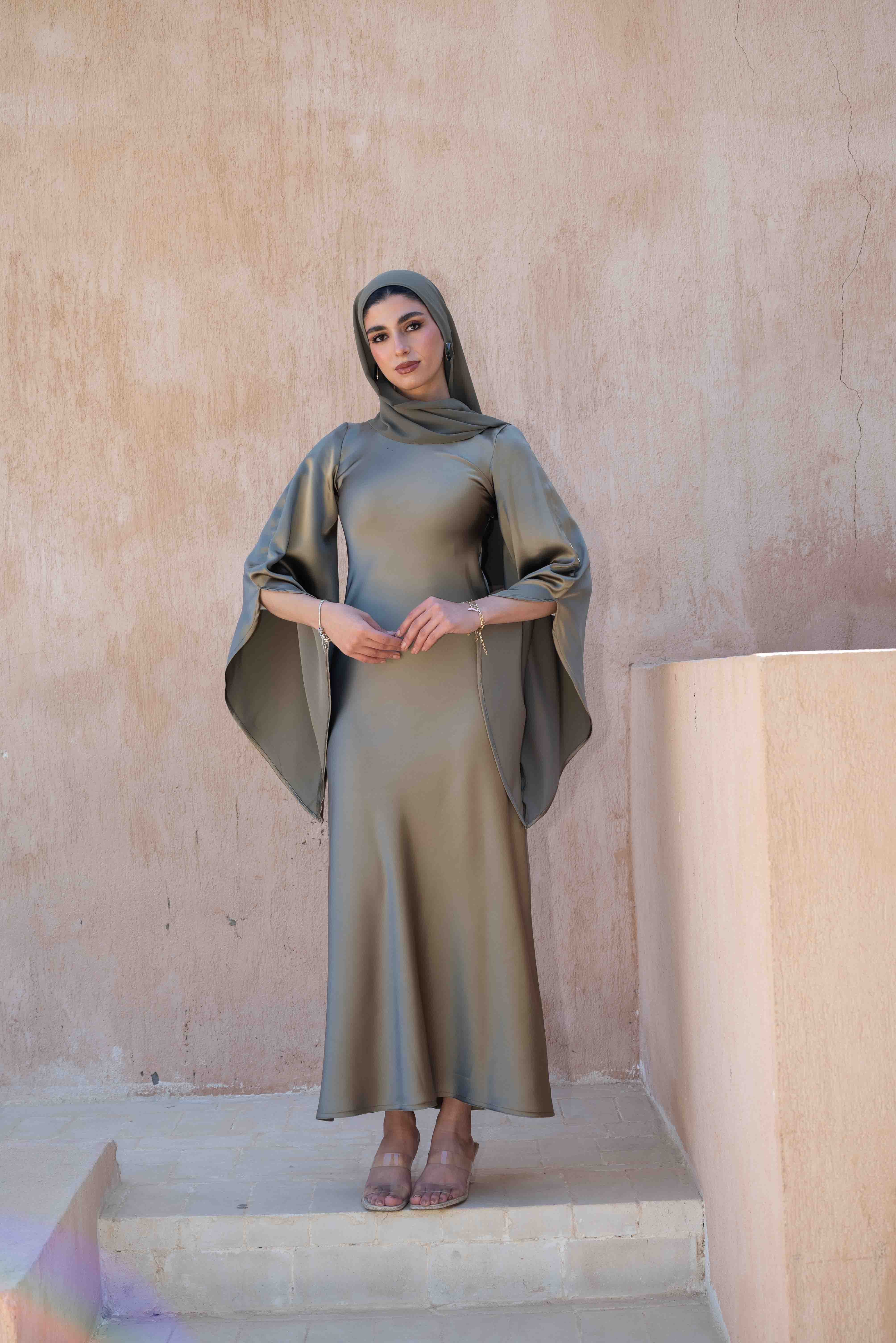 Effortless elegance meets timeless sophistication with the Sandstone Flare & Flow Satin Maxi Dress. Crafted from luxurious satin, this dress drapes beautifully, offering a fluid, graceful silhouette with every step. The soft sandstone tan-khaki hue adds a touch of refinement, making it a versatile choice for formal events, weddings, and Eid celebrations. Designed with a full-length flowing skirt and subtle flare, it ensures both comfort and style while maintaining a modest yet fashion-forward look.