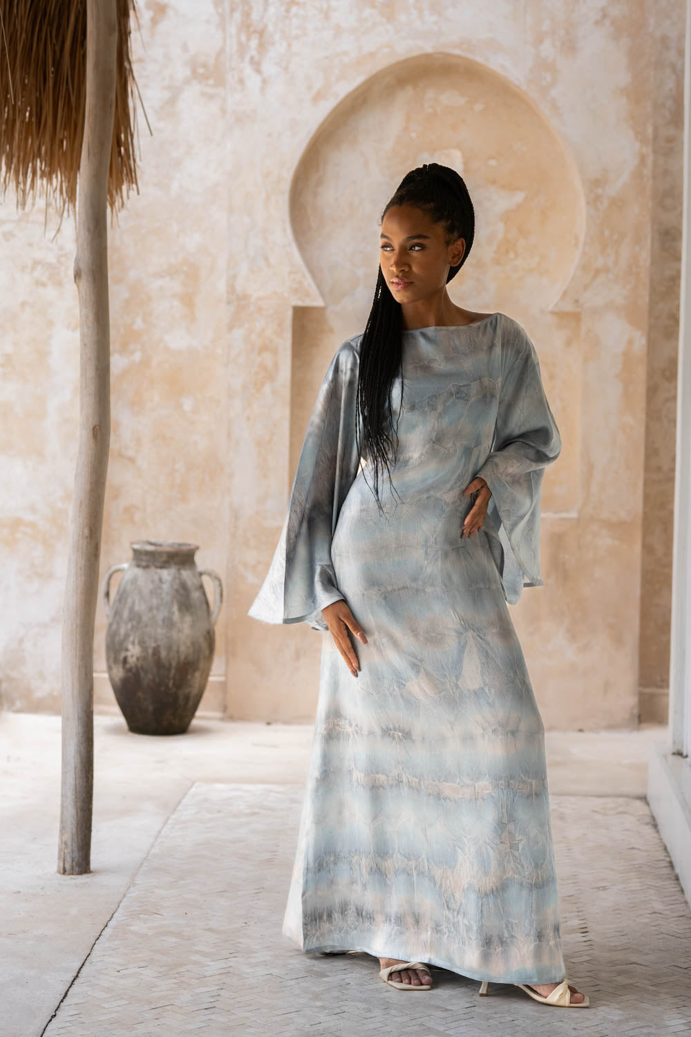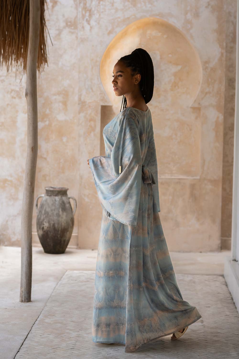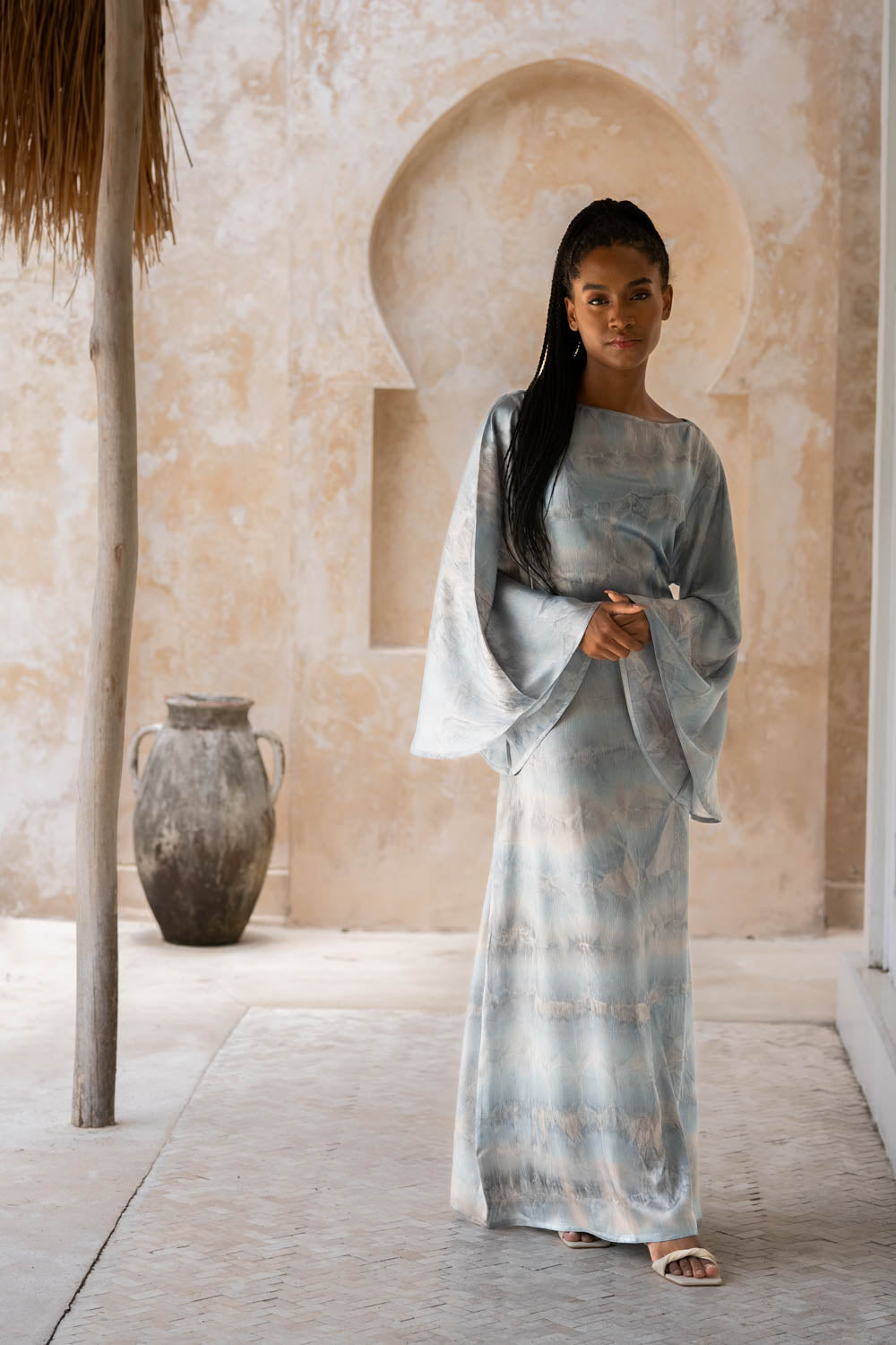 The Sea Breeze Abaya is a comfortable and stylish option, perfect for various occasions. Made from a soft and airy fabric, it features a subtle pattern that adds a touch of elegance without overwhelming. The sleeves are designed to offer freedom of movement, while the included belt allows for a customizable fit around the waist. It's a versatile piece that combines function with a relaxed style.