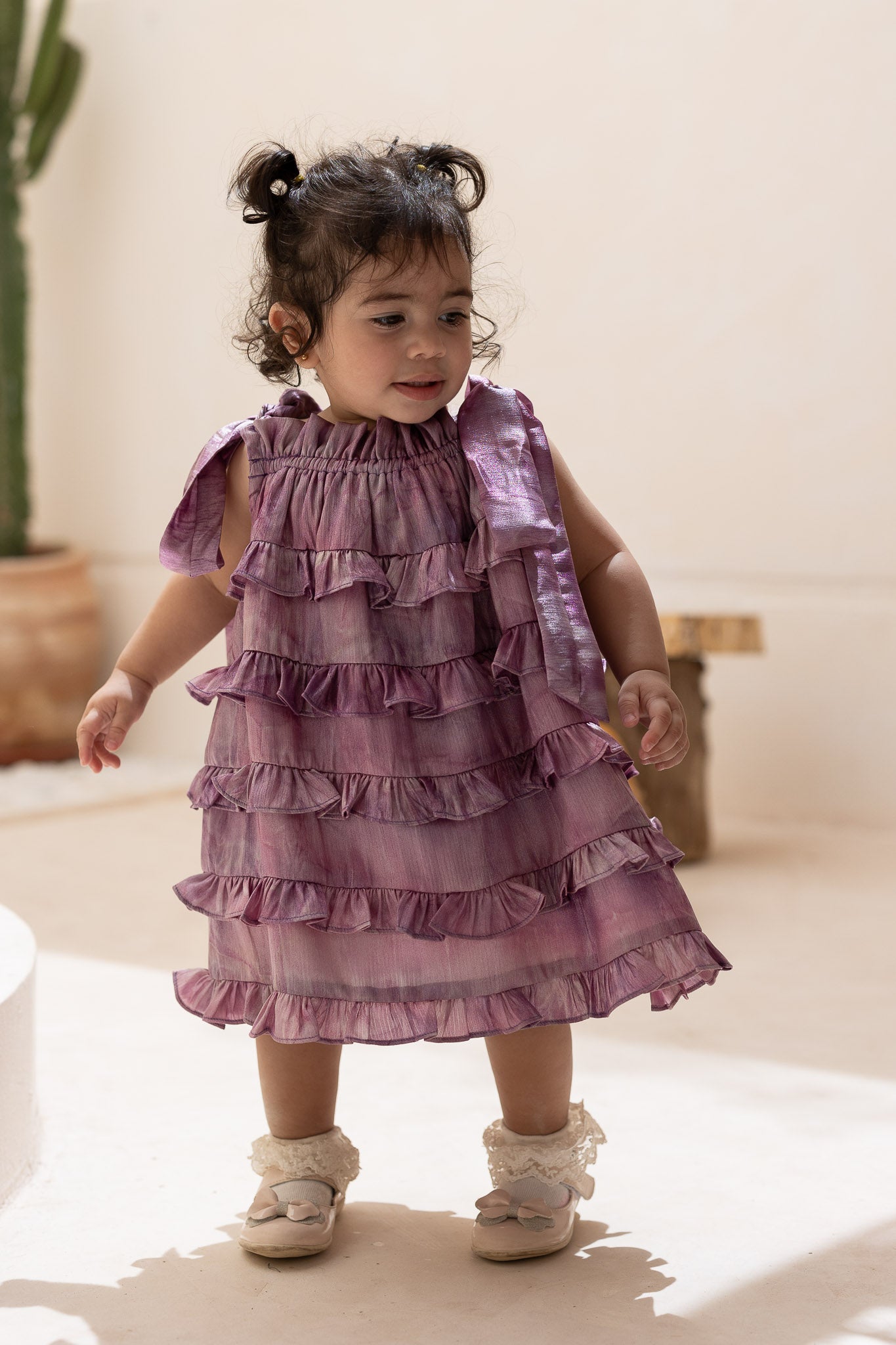 Tie Dye Pink and Purple Ruffle Baby Dress